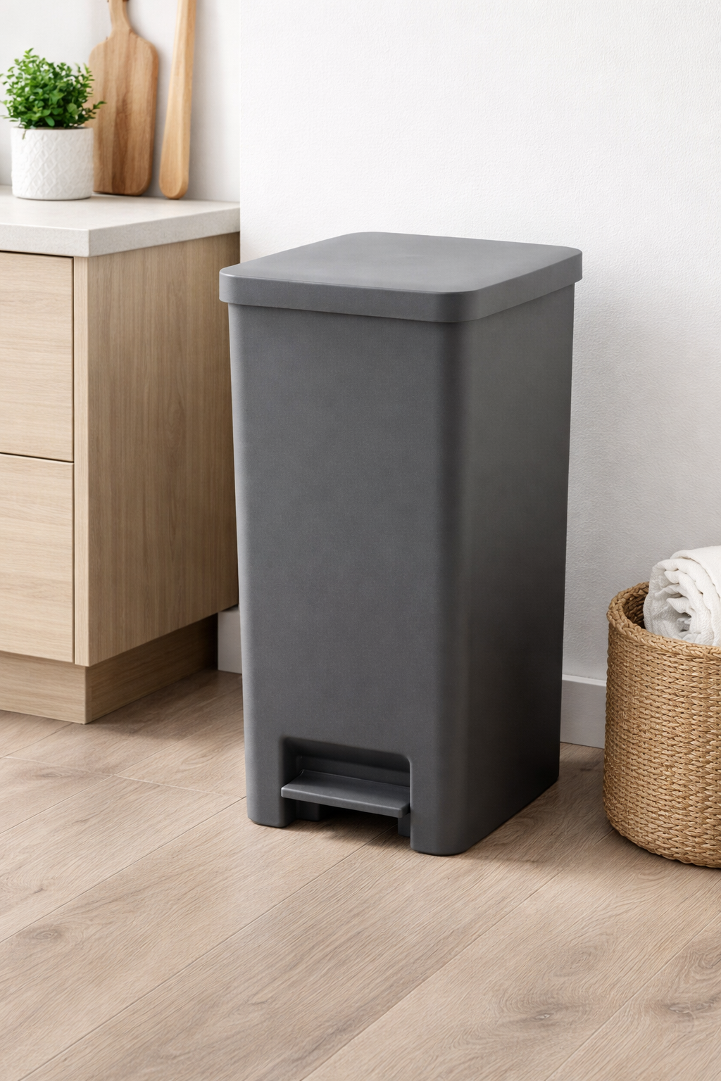 Κάδος απορριμμάτων ECOBIN 60 λίτρων, υψηλής ποιότητας και αντοχής. Κατάλληλος για χρήση τόσο σε εσωτερικούς όσο και σε εξωτερικούς χώρους. Κατασκευασμένος από ανακυκλωμένο πλαστικό υψηλής ποιότητας. Διαθέτει στεγανό καπάκι με μηχανισμό Soft Close και εσωτερικό σύστημα συγκράτησης σακούλας